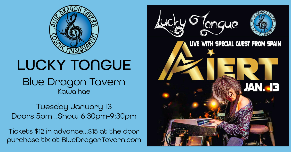 Join us for a special performance by Lucky Tongue with special guest Aiert, Spain’s legendary Hammond performer, on Tuesday, Jan. 13.