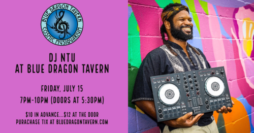 Blue Dragon Tavern presents DJ NTU.DJ, singer, and multi-instrumentalist with an attraction towards Pan Afro Music: Soul, Funk, Hip Hop, Reggae, Soca, Salsa, Cumbia, Afrobeat, and Afropop. Doors at 5:30pm. Show 7pm-10pm.