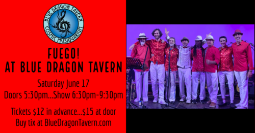 Hot rhythm section features Noa Eads on drums, Fara Tolno on congas, Greg Shirley on guitar, Mateo Belmarez on keys, and Yumbel Marassi on bass & vocals. Sizzling horns with Michaeloha Elam on trumpet and William Wingert on Trombone. Let FUEGO light your fire!