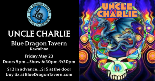 Psychedelic rock band Uncle Charlie brings the jams to Blue Dragon Tavern on Friday, May 23. Known for their mind-bending improvisational jams, every show promises to be a unique experience. Uncle Charlie breathes new life into the music of the Grateful Dead, the Beatles, The Band, and more…putting their own unique spin on the songs. The band features Steve Fundy on guitar, Warren Nelson on keys, Dave Ojeda on bass, and Tim Taylor on drums.