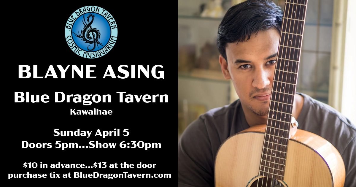 Hawaii-born musician, Blayne Asing, is established as the next generation of island singer-songwriters. His original compositions are reminiscent of the folk stars of yesteryear, invokes emotions of love, conflict, maturity and longing. What began as a journey of self-teaching, Blayne has developed many relationships after he was awarded “Most Promising Artist” at the 2016 Nā Hōkū Hanohano Awards, and has since been collaborating with many famous Hawaii-based groups and artists such as Henry Kapono, Brother Noland, John Cruz, and Kalapana.