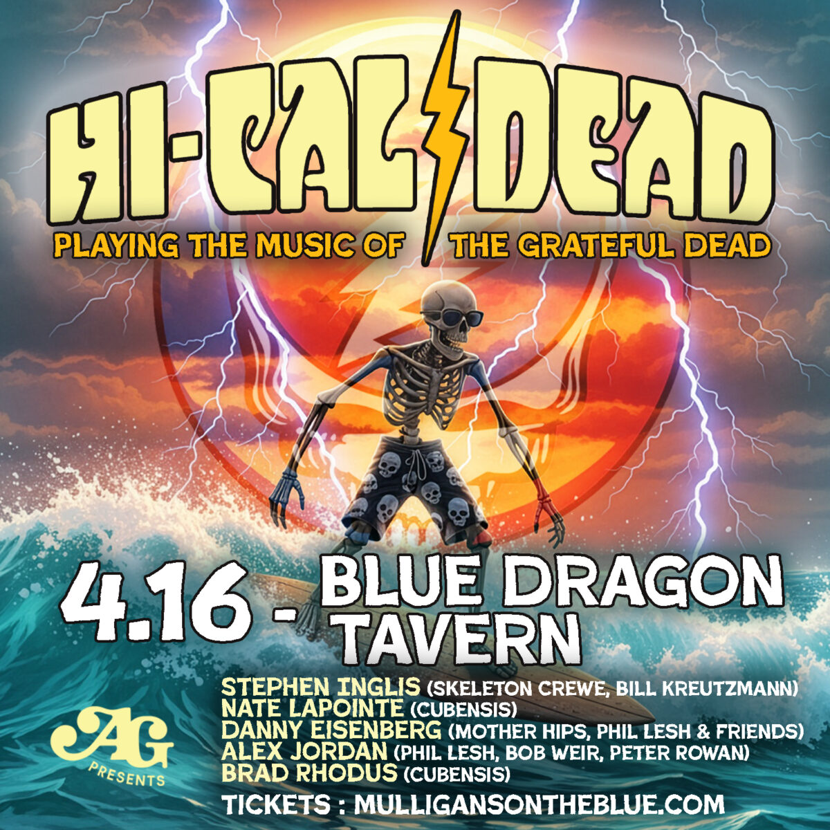 AG Presents and Blue Dragon Tavern welcome the “HI-CAL Dead”, for an evening of music by the Grateful Dead!!!
