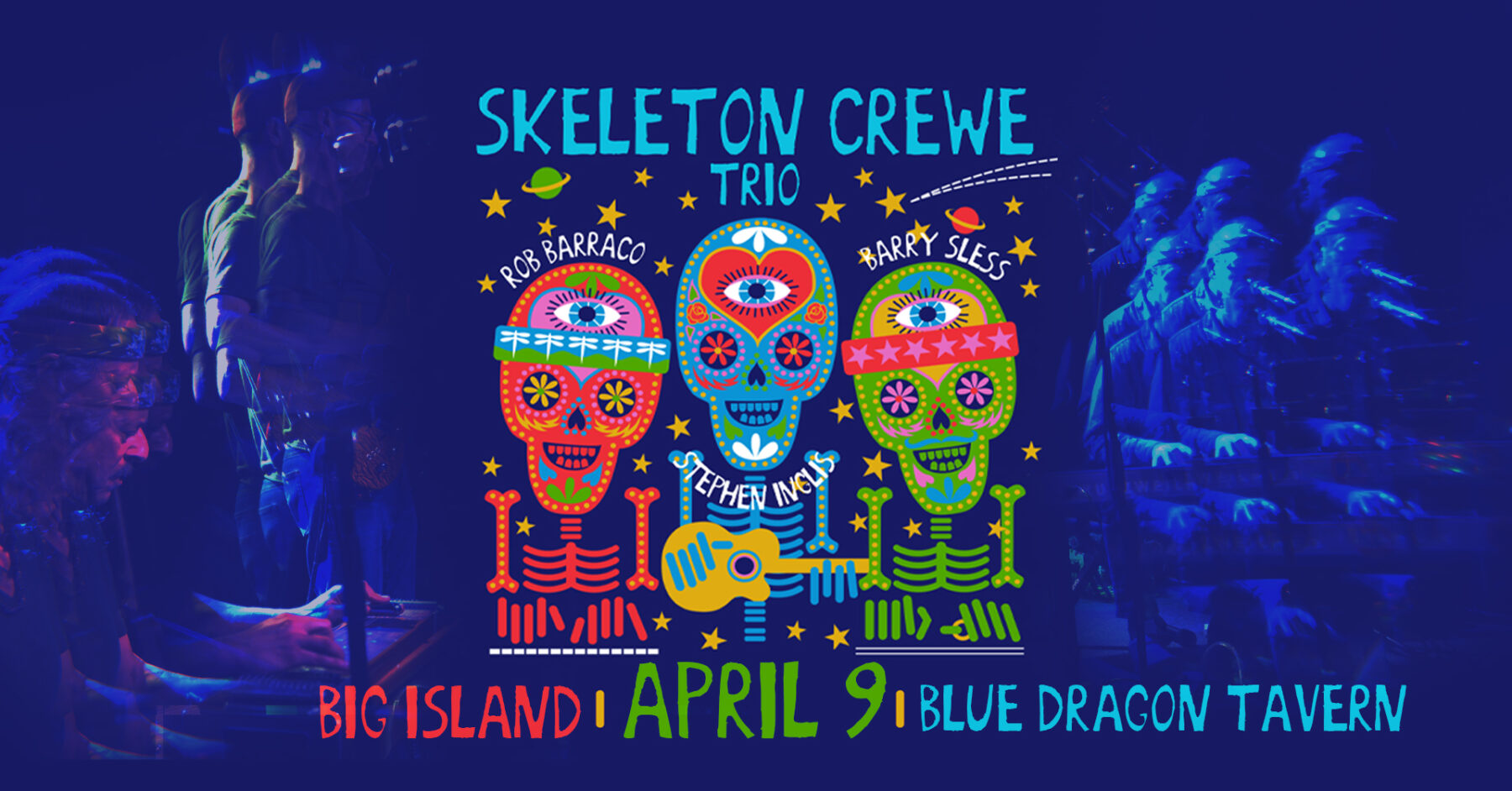Each performance, Skeleton Crewe Trio promises to offer high level artistry hosting an intimate evening of original compositions (many co-written by Robert Hunter and Barraco), Grateful Dead interpretations, and dynamic improvisations that span genres from traditionalHawaiian to psychedelic Americana.