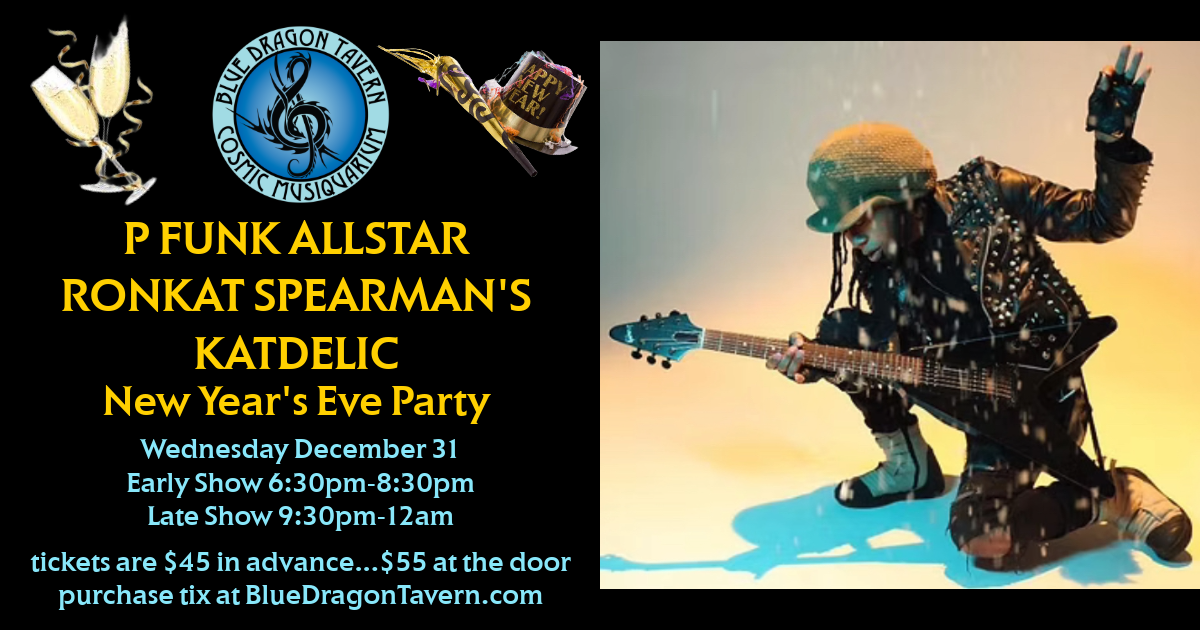 Come celebrate New Years Eve at the Blue Dragon with P FUNK ALLSTAR RONKAT SPEARMAN’S KATDELIC!