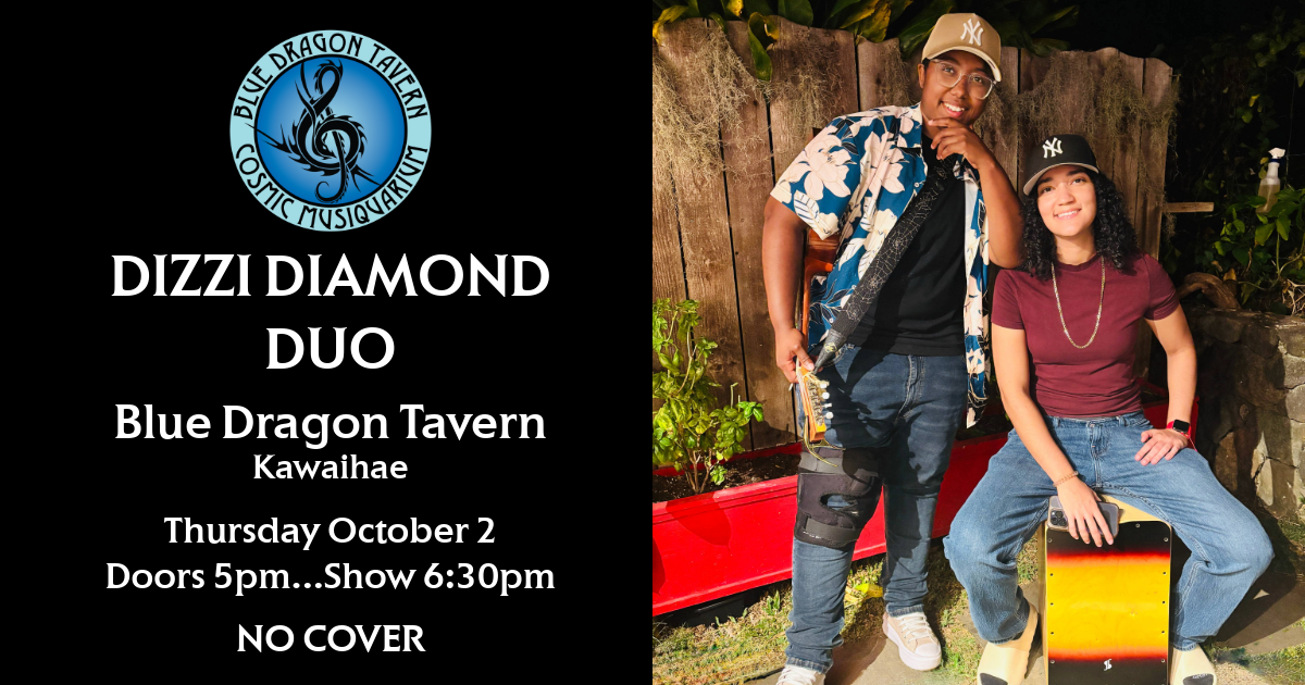 The Dizzi Diamond Duo was born and raised in New York. From Long Island to Big Island, their journey has brought them right to our neighborhood where you can count on them to bring the tunes and the vibes. They play an eclectic mix of originals and covers, which span both genres and generations. By day, they work in special education and by night, they participate in the music scene every chance they get! Dizzi Diamond plays an 8-string baritone ukulele and her twin, Diana, plays the cajon. Together, their passion for music has them absolutely driven. You can find “Dizzi Diamond” on all streaming platforms with her single 3SIX5, but for more regular updates, you can find her on YouTube @DizziDiamond1212. Spend just 20 minutes in the general vicinity of the Dizzi Diamond Duo, and you’ll probably have a pretty good idea of just how authentic they are in their motto, “Let the music be the unifier.”